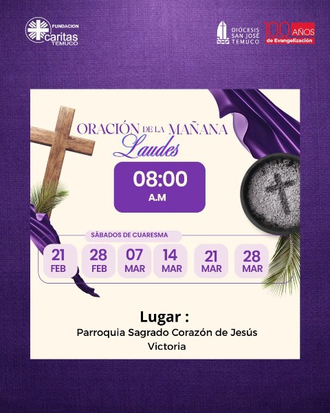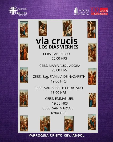 En este tiempo de Cuaresma, compartimos con ustedes las comunidades que tienen Vía Crucis. Además de oración de la mañana de Laudes y confesiones.