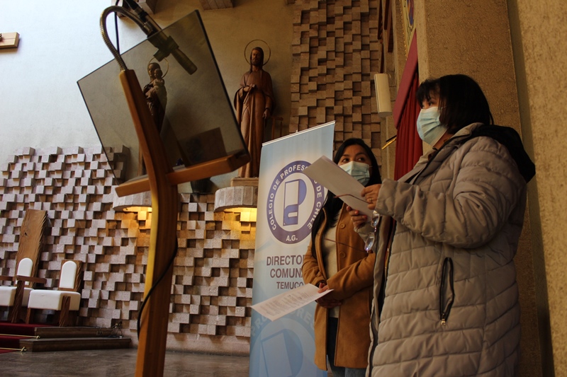 Por su parte, Carmen Gloria Calfiqueo Curilaf, Presidenta del Colegio de Profesores de la Comuna de Temuco, dijo: “ Estamos en un momento que es importante de poder encontrarnos comunitariamente, también desde la dimensión de nuestra espiritualidad para fortalecernos en tiempos que han sido complejos; estamos en medio todavía de una pandemia que ha bajado bastante sus cifras, sin embargo, los docentes hemos generado espacios de compromiso con nuestra labor docente, hemos tenido la convicción de que estos procesos tenemos que sacarlos adelante y por otro lado también estamos nosotros en un caminar de recuperación de espacios de participación, manifestar nuestra voz, de poder darle dignificación a la labor docente. Entonces el profesor en el aula tiene su responsabilidad social y fuera del aula también y tiene un rol clave y básico para avanzar.”