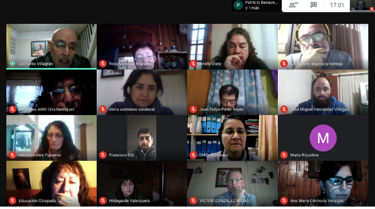 El Equipo de la Vicaría para la Educación del Obispado de Temuco, siguiendo con el trabajo virtual con docentes de religión, se reunió con Profesores de los distintos establecimientos educacionales de la comuna de Victoria.
