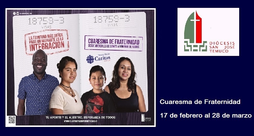 Bajo el lema “Tu aporte y el nuestro, esperanza de todos”, la Iglesia Católica nos invita a todos los chilenos y chilenas a vivir la solidaridad durante los 40 días que dura la Cuaresma, mirando particularmente a los migrantes de nuestro país. Durante este período de tres años, los aportes recaudados a través de Cuaresma de Fraternidad, permitirán ir en ayuda de personas migrantes y financiar proyectos a lo largo de todo Chile, orientados a mejorar las condiciones de vida de estas personas y promover su participación e incidencia en instancias que contribuyan a vivir con dignidad.