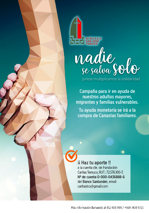 DiócesisNoticias Video Campaña Diocesana NADIE SE SALVA SOLO Diócesis de Temuco10 junio, 20201 min. Total 0 Shares Share 0 Tweet 0 Share 0 Share 0 Share 0 Pin it 0 Parroquias de Victoria, Lautaro y Temuco en campañas de acción social Parroquias de Trovolhue, Labranza y Temuco en acción social permanente