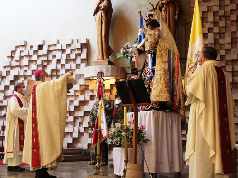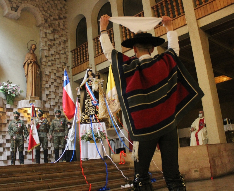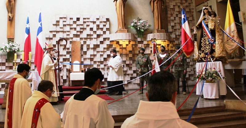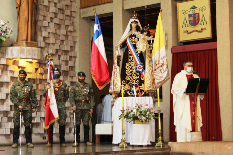 En sus palabras, el Obispo de Temuco, señaló: “ En el tradicional Día de Oración por Chile, queremos poner los gozos, angustias, esperanzas y desafíos de nuestra sociedad, bajo el amparo de Nuestra Señora del Carmen, Madre y Reina de Chile, que desde nuestra Independencia acompaña la Patria, y veneran las Fuerzas Armadas y de Orden como Patrona Juramentada (…) En este año, marcado por los sufrimientos y desafíos causados por el Covid 19, estamos llamados a discernir lo que Dios nos está diciendo en estos tiempos de pandemia, que también se convierte en un desafío para la misión de la Iglesia”.