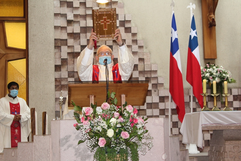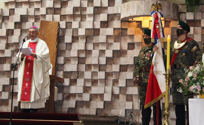 La ceremonia realizada en el Templo Catedralicio de la Diócesis San José de Temuco y transmitido por la red social Facebook, se inicia al mediodía del domingo 27, con el ingreso del Estandarte de Combate, Abanderado y Escoltadas del Destacamento de Montaña N°8 Tucapel.