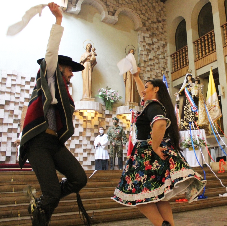Al finalizar la celebración, una pareja de huasos brindó el baile nacional a los pies de la Virgen.