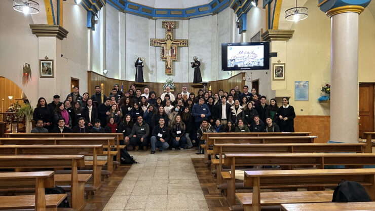 El jueves 29 de mayo se realizó la primera misa convocada por la Pastoral Universitaria de la Vicaría para los Jóvenes de nuestra Diócesis en la Parroquia San Francisco de Asís de Temuco, en la cual participaron alrededor de 70 jóvenes universitarios y profesionales, provenientes de diferentes casas de estudio como U Mayor, U Autónoma, UFRO y UCT. También se hicieron presentes jóvenes de las Juventudes de Schoenstatt y de la Renovación Carismática de la Parroquia Jesús Obrero de Temuco.